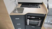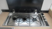 L shaped kitchen with 3 ring gas hob, oven with grill, extractor fan, stainless steel sink and 142L Absorption fridge freezer